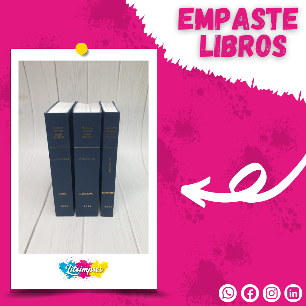 Te ofrecemos desde el servicio de impresión hasta el empaste de libros contables y tesis de grado. Usamos materiales como percalina, cuero y papel de encuadernación y complementamos nuestro servicio con estampados y repujes ya sea en el lomo o en la portada, la cual se elabora en pasta dura (fina o de lujo), rustica o pasta de tornillo.